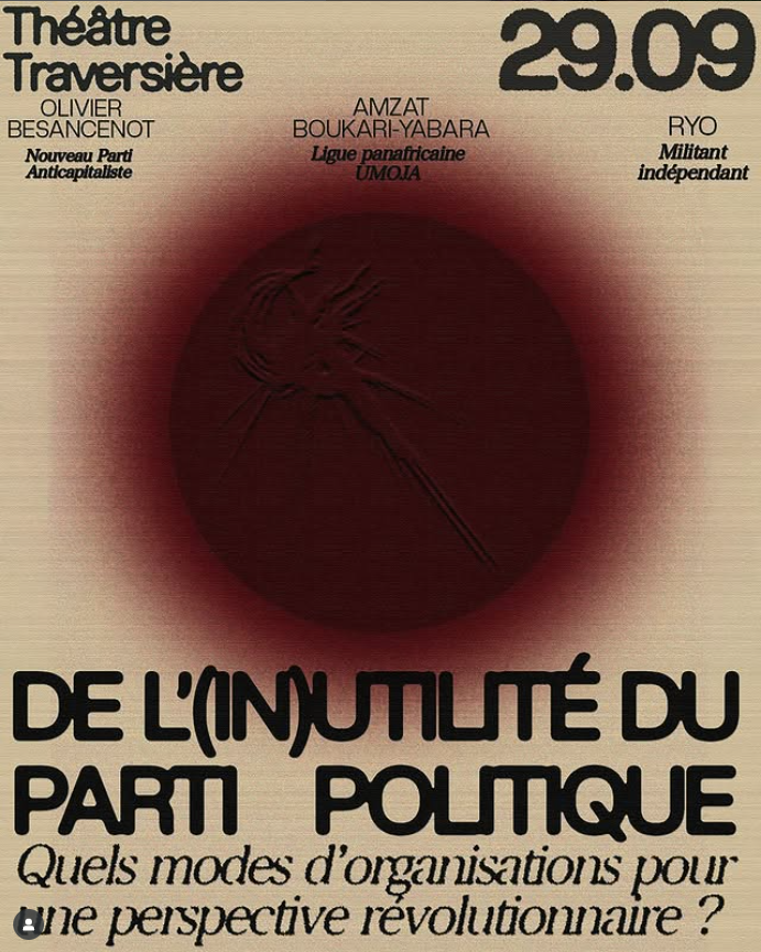 Cet événement ouvre la discussion entre Olivier Besancenot, membre du Nouveau Parti Anticapitaliste, Amzat Boukari-Yabara, président de la Ligue Panafricaine UMOJA et Ryo, militant indépendant.